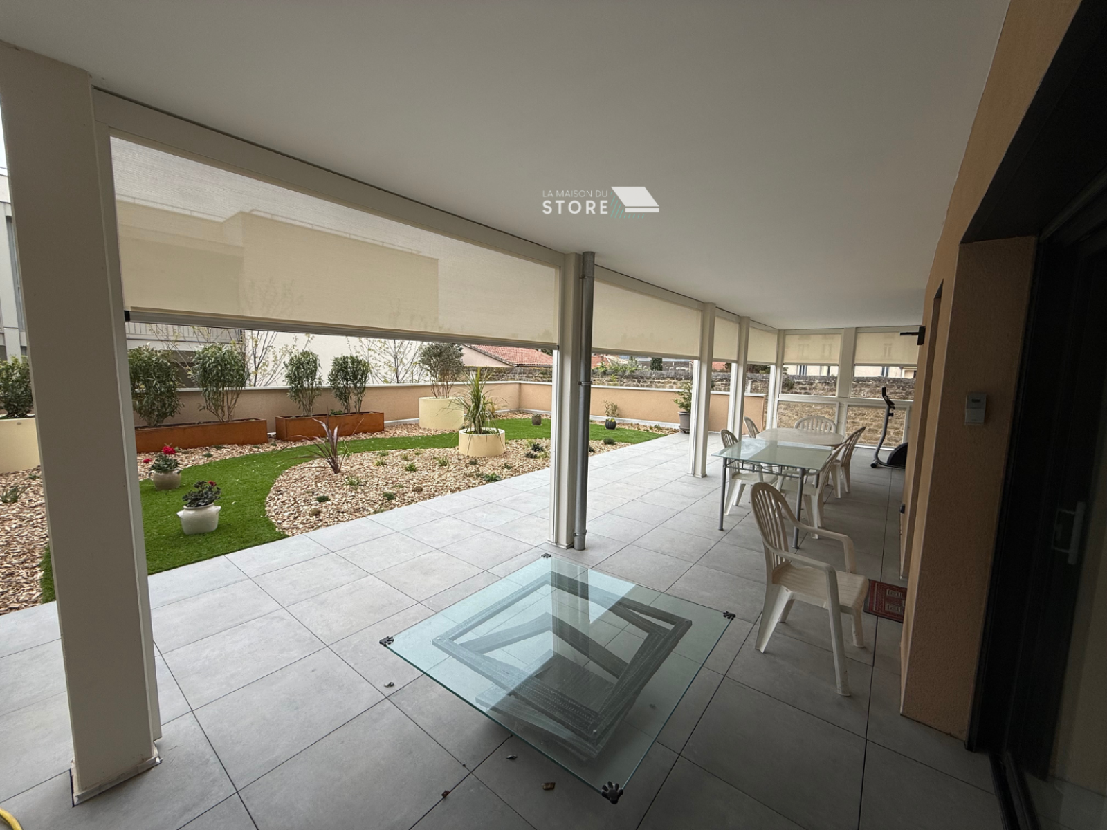 À Valence (26000), proche de Bourg-lès-Valence (26500), notre équipe est intervenue pour la mise en place d’un ensemble de stores verticaux ZIP solaires sur une terrasse, avec pour objectif d’améliorer la protection solaire, le confort d’usage et la qualité des finitions extérieures. Ce type d’équipement est particulièrement adapté aux projets recherchant une solution à la fois esthétique, discrète et performante, capable de filtrer la lumière tout en conservant une excellente tenue de toile. Le principe du store ZIP permet en effet un maintien optimal de la toile dans les coulisses, ce qui renforce la stabilité de l’ensemble et améliore le confort au quotidien.