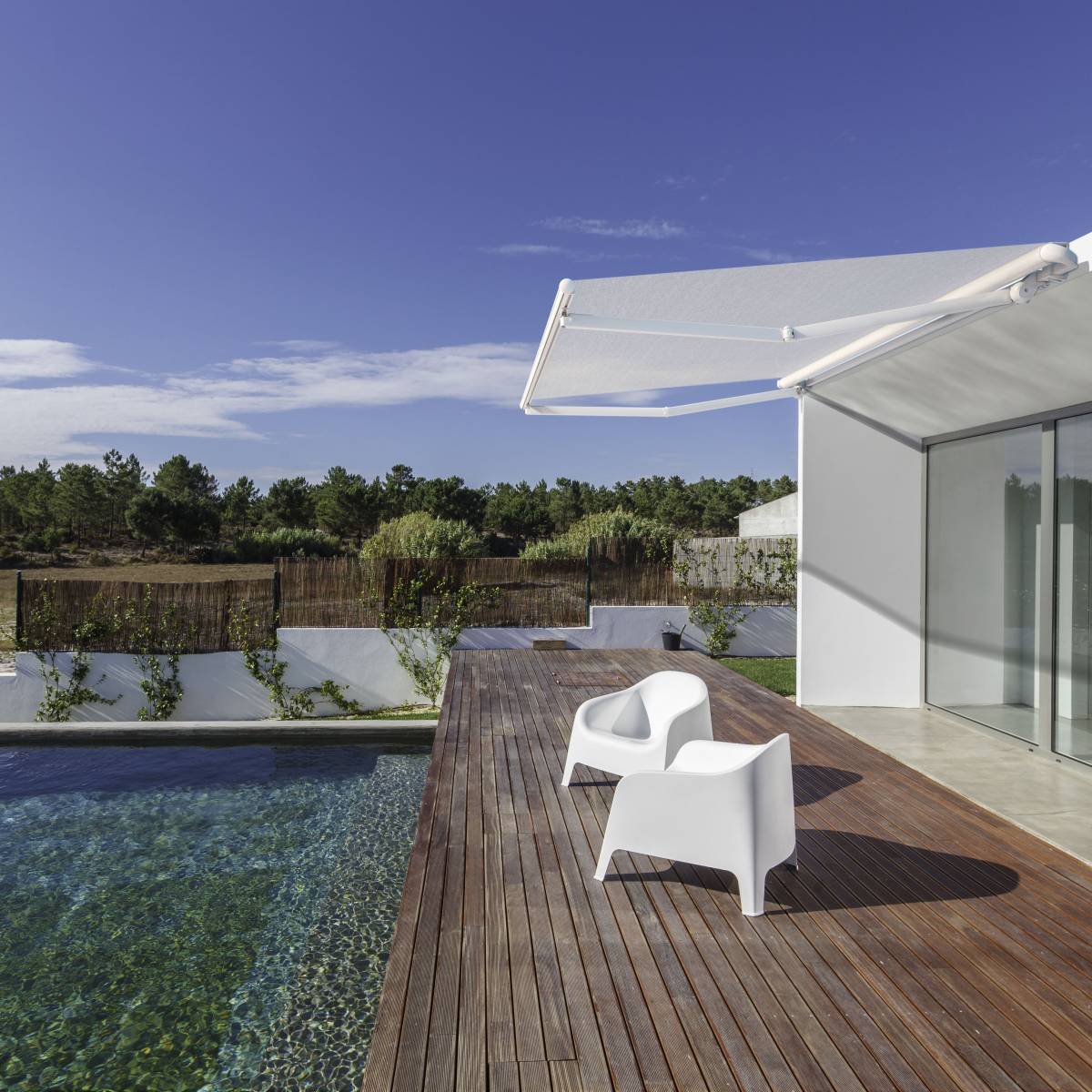 Sur-mesure : largeur, avancée, coloris d’armature et choix de toile s’adaptent à votre façade et à vos besoins, pour couvrir une petite ouverture comme une grande baie vitrée.