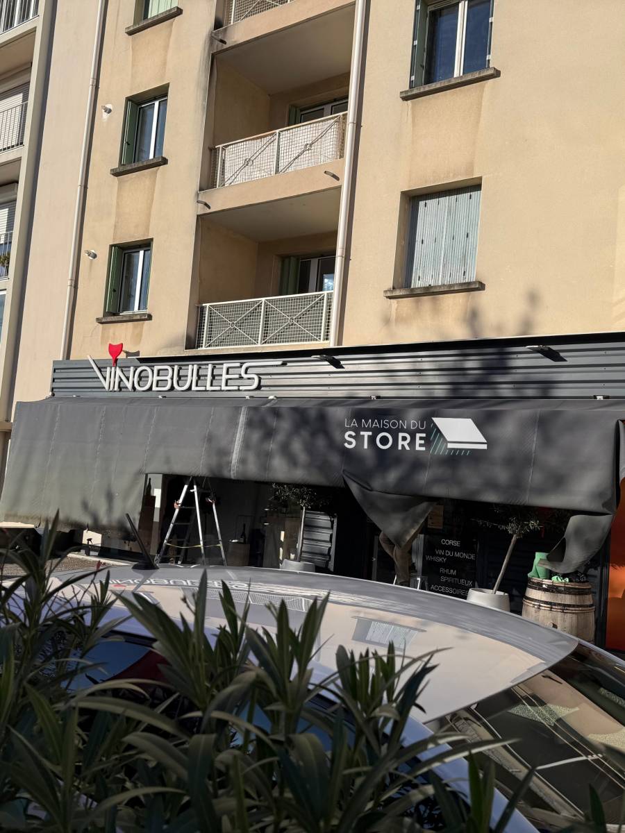 Moderniser une vitrine sans remplacer toute la structure : c’était l’objectif du rentoilage du store banne monobloc de l’enseigne Vinobulles à Valence (26000). Nous avons conservé l’armature existante et remplacé uniquement la toile par une toile acrylique DICKSON au coloris Carmin Piqué. Résistante aux UV et pensée pour un usage intensif en façade commerciale. Résultat : une protection solaire performante, un rendu plus net et une image de marque renforcée.