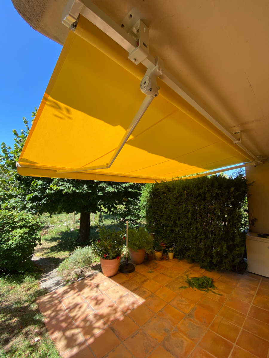 À La Roche de Glun, notre expertise en pose de stores extérieurs traditionnels sur mesure motorisés, avec une fixation au plafond, garantit une solution haut de gamme, parfaitement adaptée à l’architecture de chaque espace. Fabriqués en aluminium extrudé, nos stores bannes offrent une robustesse et une durabilité optimales. Ils sont équipés d’une toile acrylique DICKSON, résistante aux UV et déperlante, assurant une protection solaire efficace et un confort maximal.