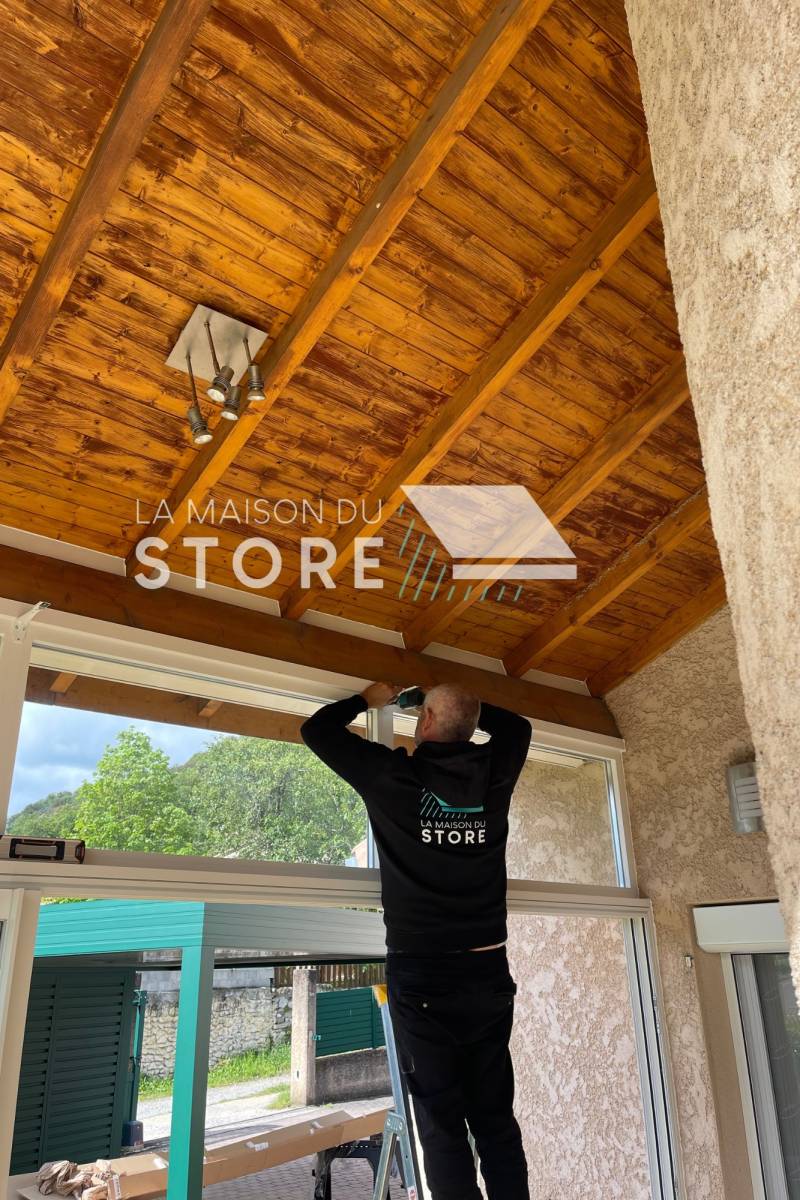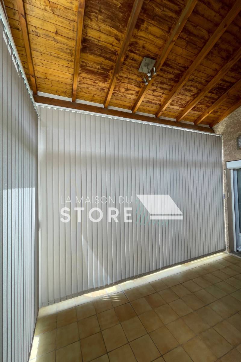 La Maison du Store, spécialiste de la protection solaire, située à Saint-Péray, a étudié ce projet avec le propriétaire. Notre store anti-chaleur à bandes verticales est composé de MYLAR, qui est un matériau à base de platine et d'argent. Il permet de réduire considérablement la chaleur dans une pièce en été avec +/- 15°C. Les stores anti-chaleur offrent une gestion complète de la luminosité, tout en ajoutant un décor, idéal pour des intérieurs résidentiels et professionnels. Conçus pour s'adapter à tout type de décoration, nos stores anti-chaleur garantissent un réel confort et une réduction de la température dans une pièce. De plus, leur entretien simple et leur robustesse face aux UV en font un investissement durable, parfait pour optimiser l'efficacité énergétique de votre espace.